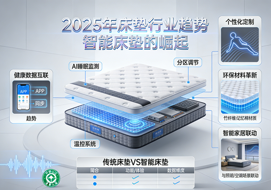 在2025年的产业变革中,智能床垫的崛起不仅是技术进步的产物,更是消费升级与健康需求碰撞的必然结果。当床垫从“睡眠工具”进化为“健康伙伴”,一个以数据驱动、场景互联、服务增值为核心的新睡眠经济时代,正徐徐拉开帷幕。