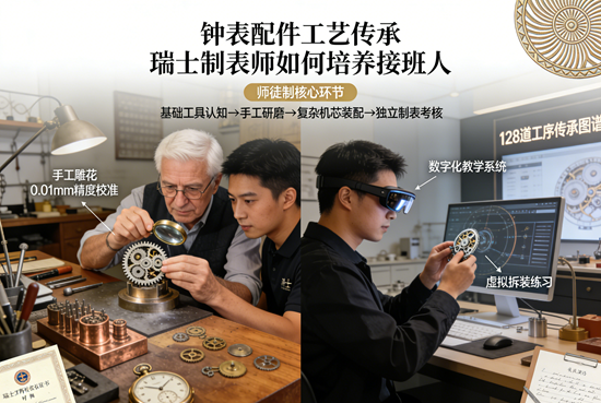 在当今高度工业化的世界中,瑞士高级制表业依然坚守着手工技艺的精髓,而这一传统的延续,关键在于其独特的传承体系。钟表配件作为精密机械的核心,其制作工艺的传承更是瑞士制表业屹立不倒的基石。瑞士制表大师们如何培养新一代接班人,确保这些微小却精密的零件制作技艺代代相传,是一门深具智慧的学问。