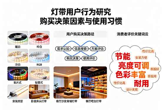 随着LED照明技术的成熟与普及,灯带已从传统的装饰性照明产品,演变为集功能性与艺术性于一体的家居照明解决方案。据行业数据显示,2025年我国灯带市场规模预计将达到XX亿元,年均增长率保持在15%以上。在这一快速扩张的市场中,深入理解用户购买决策因素与使用习惯,已成为企业制定精准营销策略、优化产品设计的关键所在。本研究通过分析消费者行为数据,揭示灯带市场的深层需求与未来趋势。