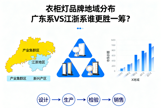 在中国家居照明领域,衣柜灯作为细分赛道正经历着从功能照明到场景化智能照明的深度变革。据中国照明电器协会数据显示,2025年中国衣柜灯市场规模预计突破85亿元,年复合增长率达25%。在这场产业升级浪潮中,广东与江浙两大产业集群凭借各自优势形成双雄对峙格局。本文将从技术沉淀、产业链整合、品牌生态三个维度,深度解析两大产区的竞争态势。