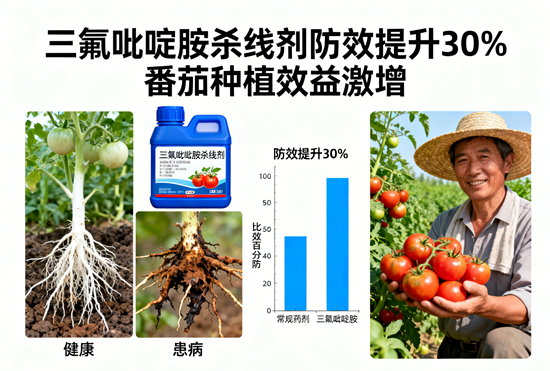 在山东、河南等地的田间试验中,三氟吡啶胺展现出惊人的防效提升。当使用40-60克/百公斤种子处理剂量时,对番茄根结线虫的防治效果比常规药剂高出30%以上。更令人振奋的是,其持效期长达120天,远超传统杀线剂的30-60天,意味着农民只需一次施药,即可全程守护番茄健康生长。