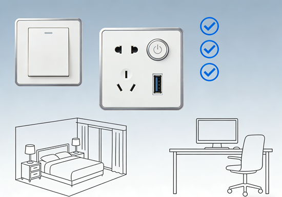 在现代商业空间设计中,开关插座虽小,却扮演着至关重要的角色。酒店客房、办公室工位、会议室等场所,每天都有大量电子设备在使用,从手机充电到电脑办公,从智能照明到会议系统,开关插座的安全性与便捷性直接关系到用户体验和商业空间的品质。