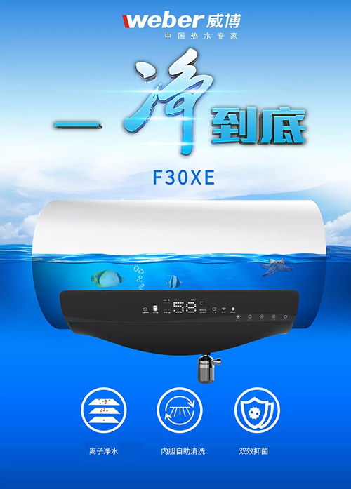 威博热水器新品F30XE系列,健康活水再升级,让家人用最干净的水,洗上最健康的澡。