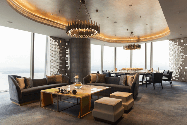 位于70楼的云璟餐厅独具匠心的就餐环境,极富创意的“云纹”适时出现,行走其中如同在云端漫步,无形中引人浮想联翩。