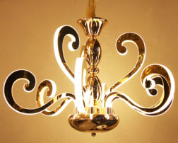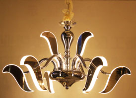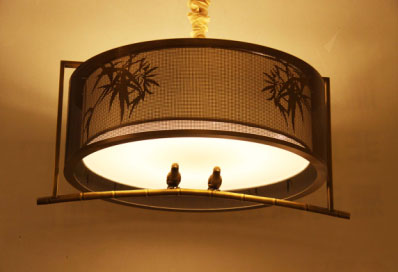 这反映的是造型尽可能地向自然靠拢,从大自然的真实景物中获得灵感,或抽象或写实地运用于灯饰造型中,使灯饰充满自然格调,让人们的居室与自然近在咫尺。自然总是人们的向往,灯饰融入自然元素,也就变得更加巧妙。如万隆汇洋丽高家居馆的田园灯饰系列,将发光体支撑部分做成浪花或祥云形状,或者做成叶片状,既有起伏的美感,又有自然的风味;万隆汇洋诺克照明展厅的一款吊灯,外形就像女士的长裙,购成长裙的灯枝灯罩灯泡又一根根伸展的树枝,或上伸,或下伸,构成一幅自然图景,美艳无比,甚至有一个名字叫“国色天香”;万隆汇洋大唐照明展厅的一款餐台吊灯,更是以金属做成花鸟样儿,那两只站在树枝上的鸟儿栩栩如生,在这样的灯下用餐,仿佛感受到鸟语花香,何其美妙!