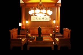 一亩地中式生活馆的客厅吊灯,与红木家具搭配成一个和谐的光影空间
