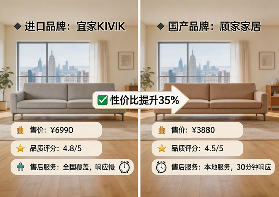 真实案例:上海白领小王对比宜家沙发(¥6990)和顾家家居同款(¥3880),省下3000元,还多配了同系列茶几!