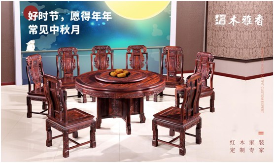 中秋节,是我国的传统节日,此时月亮又圆又亮,寄托着“圆满”的美好寓意,因而又叫“团圆节”。在红木家具中,“圆”这个经典元素也很常见,融入中式家装风格,用中国“圆”来打造的圆形餐桌,正是恰到好处地契合了一家人圆圆满满的主题。