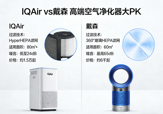 在空气质量备受关注的今天,高端空气净化器已成为品质家庭的“健康刚需”。当预算迈入万元级,瑞士专业品牌IQAir与英国科技巨头戴森便成为绕不开的选择。它们一个以“实验室级净化”立身,一个以“智能设计美学”破圈。究竟谁更值得托付全家呼吸健康?本文将抛开营销滤镜,从硬核参数到真实体验,为您深度拆解。