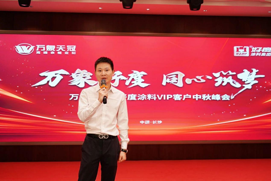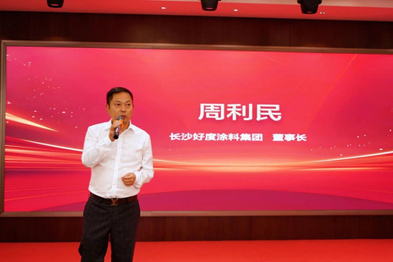 长沙好度涂料集团董事长周利民先生上台发表讲话,系统解读此次携手打造 VIP客户中秋峰会的战略考量与长远意义,并明确表示集团将以峰会为纽带,强化与合作伙伴、核心客户的联动,共促产业生态升级。