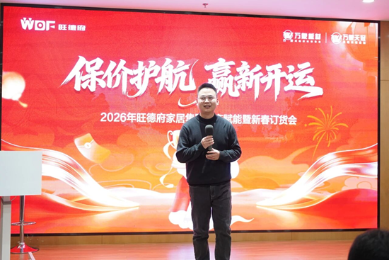 1月22日,在旺德府万象时代15楼会议中心举办了以“保价护航 赢新开运” 为主题的旺德府家居集团大商赋能大会暨新春订货会。作为集团开年首场重要活动,本次大会汇聚集团核心高层与优秀合作商,共同研判行业趋势、共商发展策略。现场发布的一系列重磅政策与品质承诺,为新一年的合作增长注入强劲动力,也彰显了旺德府家居集团持续深耕渠道、与伙伴携手前行的坚定决心。