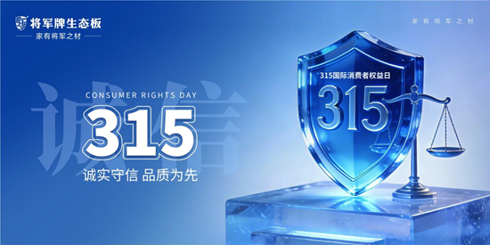 3.15国际消费者权益日如期而至,中国消费者协会明确2026年维权年主题为“提升消费品质”,这既是对消费者需求的回应,也是对企业的品质召唤。对消费者而言,这是守护权益、追求高品质消费的节点;对企业而言,是品质与诚信的试金石。对将军牌生态板来说,“诚信315,匠心践承诺”从不是口号,而是刻在基因里的责任,更是推动提升消费品质、守护消费者权益的无形鞭策。