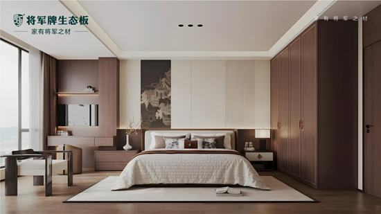 好板材,更能适配多元家居需求。将军牌生态板板面平整光洁,纹理自然流畅,花色丰富多样,涵盖温润木纹、简约纯色等多种风格,可轻松适配现代、轻奢、新中式、极简等各类家装设计,无论是全屋定制柜体、护墙板,还是背景墙、书柜,都能完美融入空间,兼顾颜值与实用性,让家居格调更显高级。