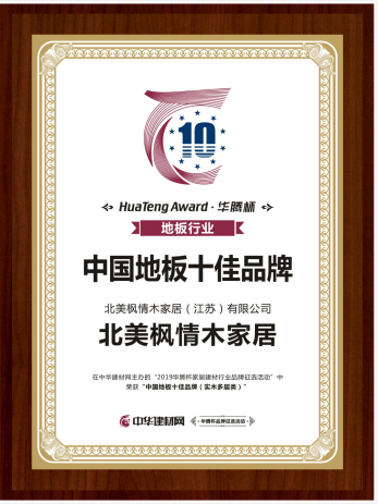 近日,在中华建材网打造的“华腾杯2019中国家居建材行业品牌征选活动”中,北美枫情木家居以其强大的渠道力量和卓越的品牌影响力赢得了消费者和专业评委的一致认可,赢得了华腾杯2019年“中国地板十佳品牌(多层实木类)”,并在品牌建设的道路上树立了另一座丰碑。