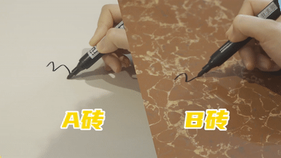 做完以上4个硬核测评,想必你们都猜出来哪块砖才是品牌店购买的吧?登登登~揭晓答案了!A砖是我在 金舵瓷砖品牌店买回来的,而B砖是我在杂牌店买的。