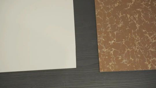 为了测试一下这两种抛光砖有什么区别,我把两块砖的标签都盖住了,等一下你们可以猜猜哪一块砖是品牌店买的。