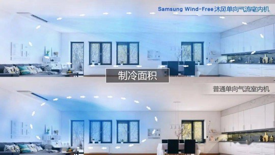 三星Samsung Wind-Free沐风单向气流嵌入式产品,通过特别的设计理念,帮助您解决“既能快速凉爽,又避免直吹冷风”的难题。