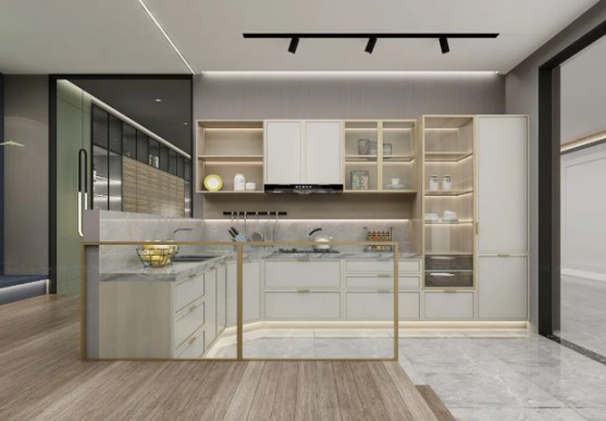 以橡木白为基调的开放式厨房,现代人生活压力大,想像一下当你回到家来到这样一款定制的厨房烹饪美食,回归安静享受片刻静谧时光,一定感到很惬意。