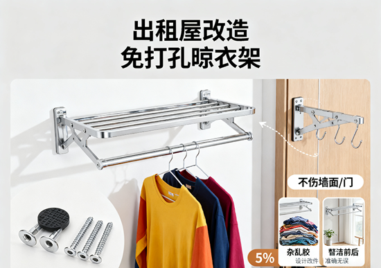 二、免打孔晾衣架的革新:从"破坏"到"无痕"