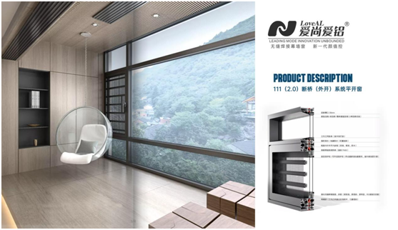 爱尚爱铝111(2.0)断桥(外开)系统平开窗,搭配隐形排水孔,选用20mm尼龙隔热条,边框宽度为111m,超窄的轮廓边框设计,流畅的外观协调线条,宽阔的大面积透明玻璃,大视野、大空间!以其时尚大气的别致魅力,唤醒沉闷的家居空间,随时随地体验180°全景式视野,能够更好地欣赏“满园春色”。