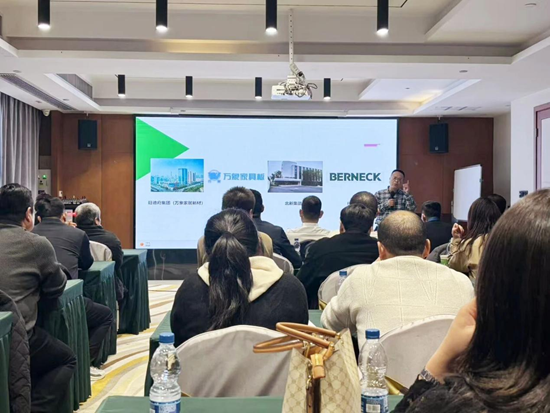 万象板材省外加盟中心长江以北战区经理李毅先生随后登台,聚焦全新推出的万象博耐克系列产品展开专业分享。针对产品研发理念、核心材质优势、环保性能指标、适用场景拓展等维度进行全方位解析,让在场渠道伙伴深入了解新品的差异化亮点与市场竞争潜力。