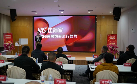 渠道为翼,产品为核。本次峰会特邀成都佳饰家装饰新材料科技有限公司产品总监陈静亲临现场,带来2026年度最新花色鉴赏与重磅推介。从设计源头深度解读新系列花色的核心优势,精准剖析产品组合逻辑与全风格搭配体系。