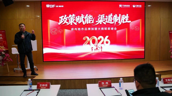 会议由旺德府集团毛宁主持。开场致辞中,他首先代表集团向各位加盟商致以热烈欢迎与诚挚谢意,感恩各位合作伙伴长期以来与集团同心同行、携手深耕,共赢2026!