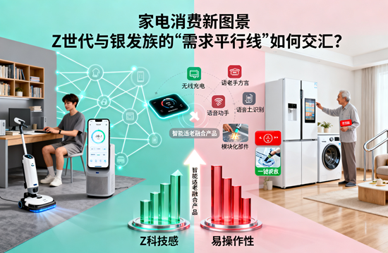 当00后小李用手机语音指令启动扫地机器人时,65岁的张阿姨正在社区活动中心学习用智能电饭煲预约煮粥。这两个看似平行的生活场景,正勾勒出中国家电市场最鲜活的消费图谱——Z世代与银发族,这两个年龄跨度超过40年的群体,正在用截然不同的方式重塑家电行业。他们就像两条并行不悖的轨道,既保持着各自的运行逻辑,又在数字化浪潮中悄然靠近。