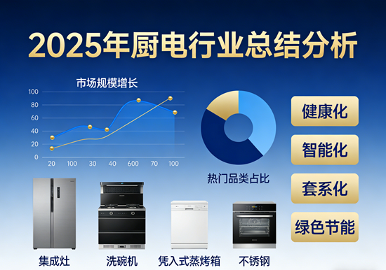 2025年,中国厨电行业在"以旧换新"政策强力驱动与消费升级的双重作用下,迎来显著复苏与结构性变革。这一年,行业告别了过去的粗放增长模式,步入了以价值导向为核心的新发展阶段。本文将从政策影响、市场表现、发展趋势及企业应对策略等多维度,对2025年厨电行业进行系统性总结与分析。